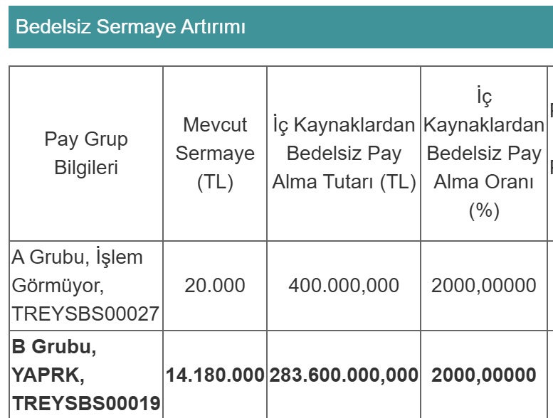 Sermaye artırımı kapsamında şirketin mevcut 14.200.000 TL olan çıkarılmış sermayesi, iç kaynaklardan karşılanmak suretiyle 298.200.000 TL’ye yükseltilecek. Bu artışın finansmanında 194.079.216,53 TL tutarındaki sermaye düzeltmesi olumlu farkları, 12.651.352,45 TL tutarındaki özsermaye enflasyon farkları ve 77.269.431,02 TL tutarındaki olağanüstü yedekler kullanılacak.
