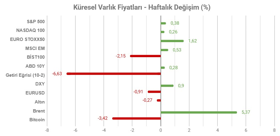 Geride bıraktığımız haftanın en kritik başlığı ABD ile İran arasındaki gerilim oldu. ABD Başkanı Trump’ın nükleer program anlaşması için 10-15 günlük bir süre tanıması ve askeri hareketliliğin artması, çatışma endişelerini güçlendirdi. GCM Yatırım, bu durumun etkilerini “Petrol fiyatları yaz döneminden bu yana en yüksek seviyelere ulaştı, altın fiyatları da bu gerilimden destek aldı” şeklinde ifade etti.