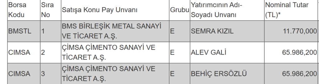 Bu işleme konu olan bir şirket oldu. Bu şirket, ÇİMSA ÇİMENTO SANAYİ VE TİCARET A.Ş. olurken, çeşitli yatırımcılar E tipi işlem görmeyen paylarının bir miktarını borsada işlem gören tipe dönüştürmek için başvuru yaptı.