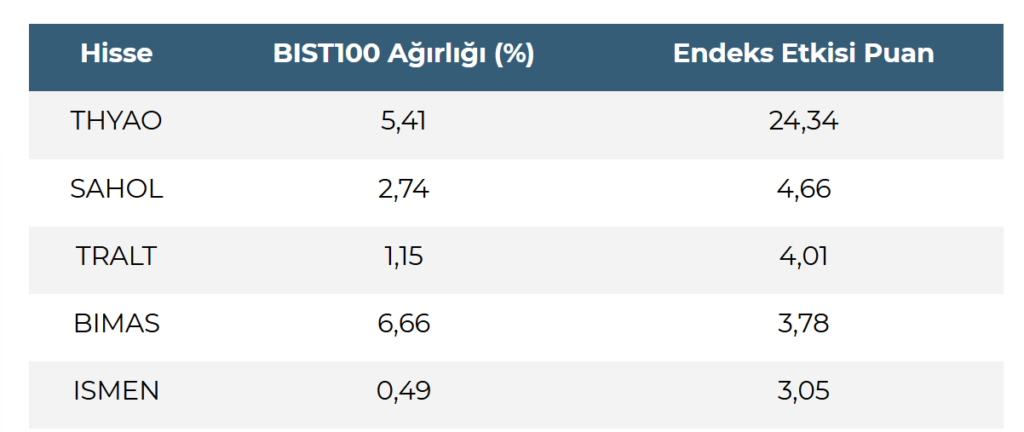 Haftanın son işlem gününde BIST100 endeksi güne %0,15 azalışla, 14.158,97 seviyesinden başladı. Günün ikinci yarısına doğru yaklaşırken endeks 14.320,87 tarihi zirve seviyesini test ederek pozitif seyrini sürdürmektedir. Pozitif hareketin devamında 14.500 seviyesi kritik eşik konumunda yer almaktadır. Olası geri çekilmelerde 13.695 seviyesi destek olarak takip edilebilir. Endeks etkisi açısından bakıldığında THYAO ve SAHOL’un pozitif fiyatlamayla endekse destek olmaya çalışan tarafta yer aldığı görülmektedir.
