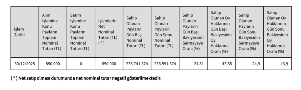 📌 Not: İşleme ilişkin ayrıntılı bilgiler KAP’ta yayımlanan tabloda yer alıyor.