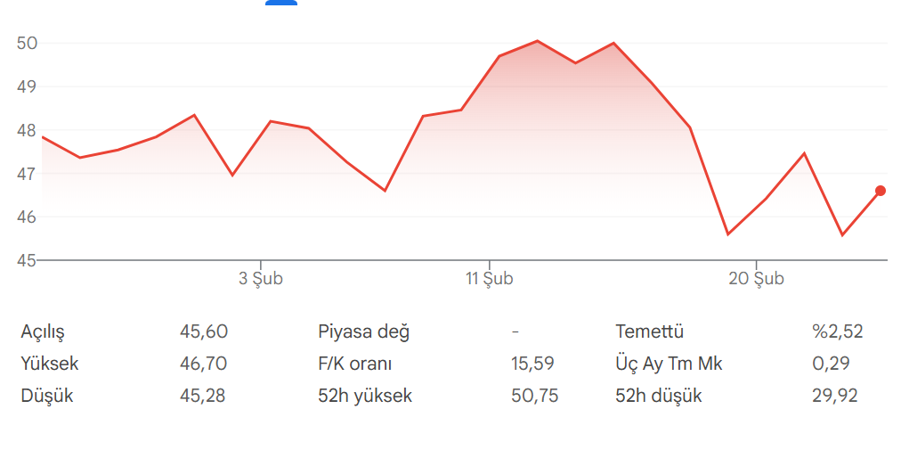 Spot Fiyat: 47,46 23.Şubat kapanış