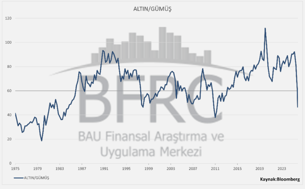 - “Her ne kadar Altın/Bakır rasyosu riskten kaçış eğilimi gösteriyor gibi dursa da Altın/Gümüş rasyosunda bunun tersi bir davranış görüyoruz. Rasyodaki bu aşağı yönlü hareket (gümüşün altına karşı pozitif ayrışması), alternatif güvenli liman arayışının bu metale sirayet etmesiyle gümüş özelinde artan bir talep olduğunu göstermektedir.”