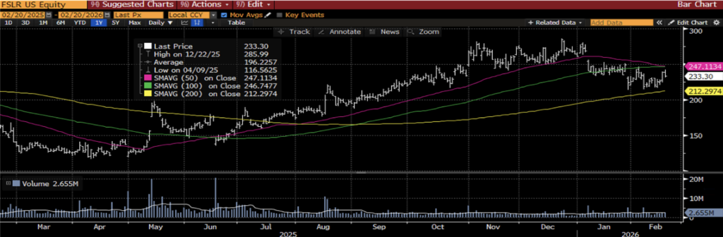 FSLR, ince film (thin-film) güneş paneli üretimi alanında faaliyet gösteren ABD merkezli bir yenilenebilir enerji şirketidir. Şirket, özellikle utility-scale güneş enerjisi projelerine yönelik yüksek verimli fotovoltaik modüller geliştirerek küresel ölçekte enerji dönüşümüne odaklanmaktadır.