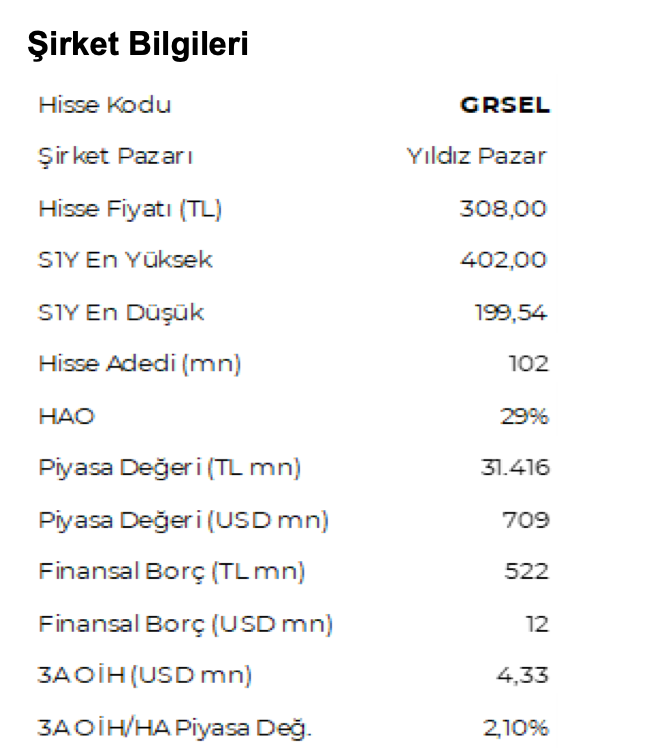 Şirket, 2025 yılında gelirinin %64,5’ini personel taşımacılığı, %21,6’sını öğrenci taşımacılığı, %11,00’ini toplu taşıma segmentinde gerçekleştirdi. GRSEL, personel ve öğrenci taşımacılığında toplam ~7.500 filo büyüklüğüne sahip. Personel taşımacılığında günlük 275.000 taşıma kapasitesi, öğrenci taşımacılığında ise 55.000 günlük taşıma kapasitesi bulunan GRSEL, Ürdün’de toplu taşıma faaliyetlerinde 90.000 taşıma kapasitesine kadar yükseldi. Şirket tarafından edinilen bilgiye göre ise bu kapasite 100.000’in üstüne çıktı.